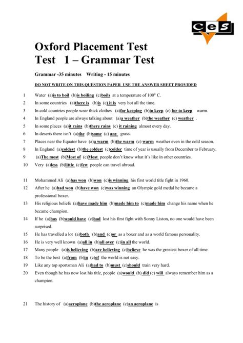 Read Oxford Placement Test Answers Elementary To Intermediate Reader